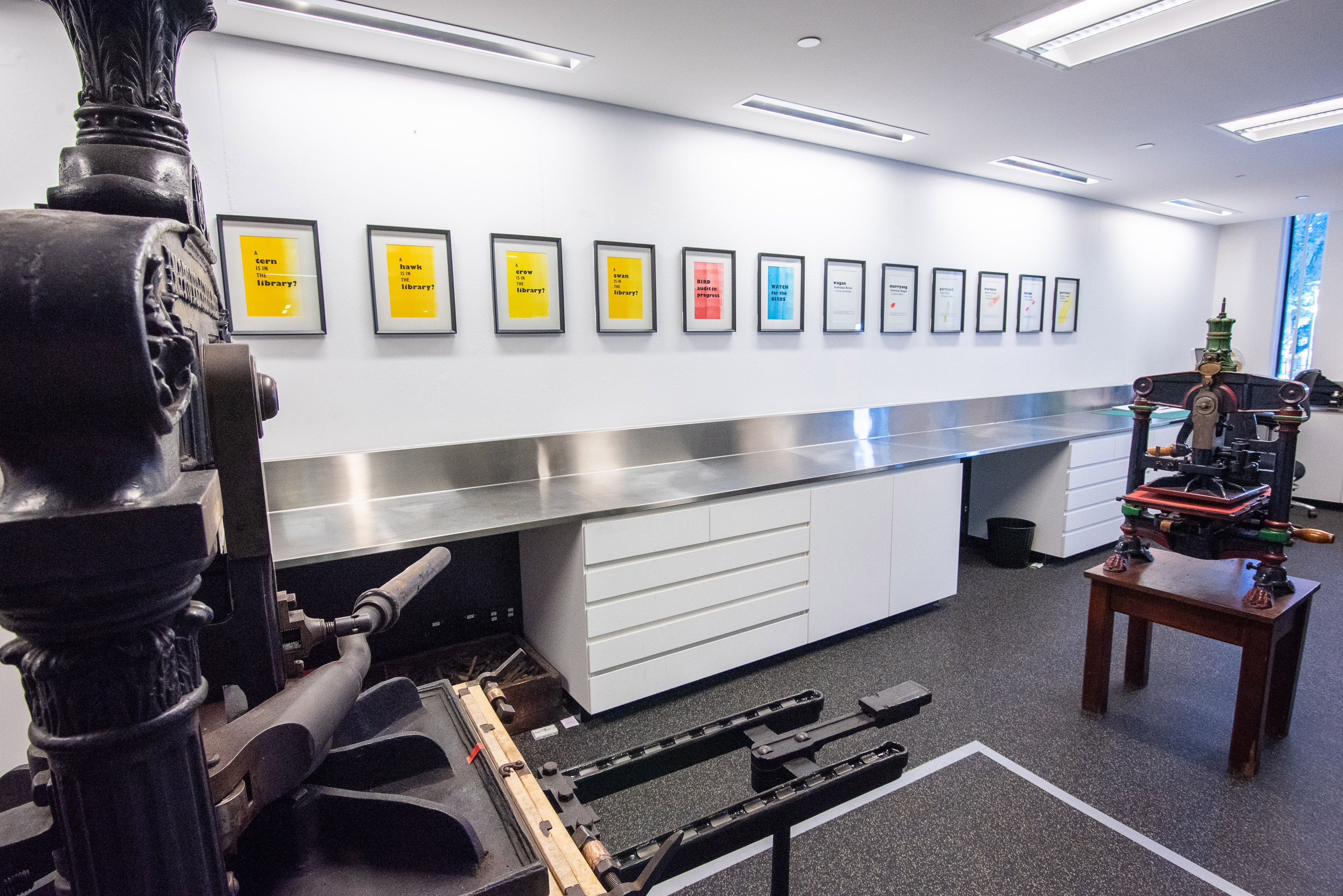 This letterpress project brought together Barbara's passion for print techniques, haiku, libraries, and birds. Library users engaged in an imaginative journey via letterpress and the architecture of the library and its systems.