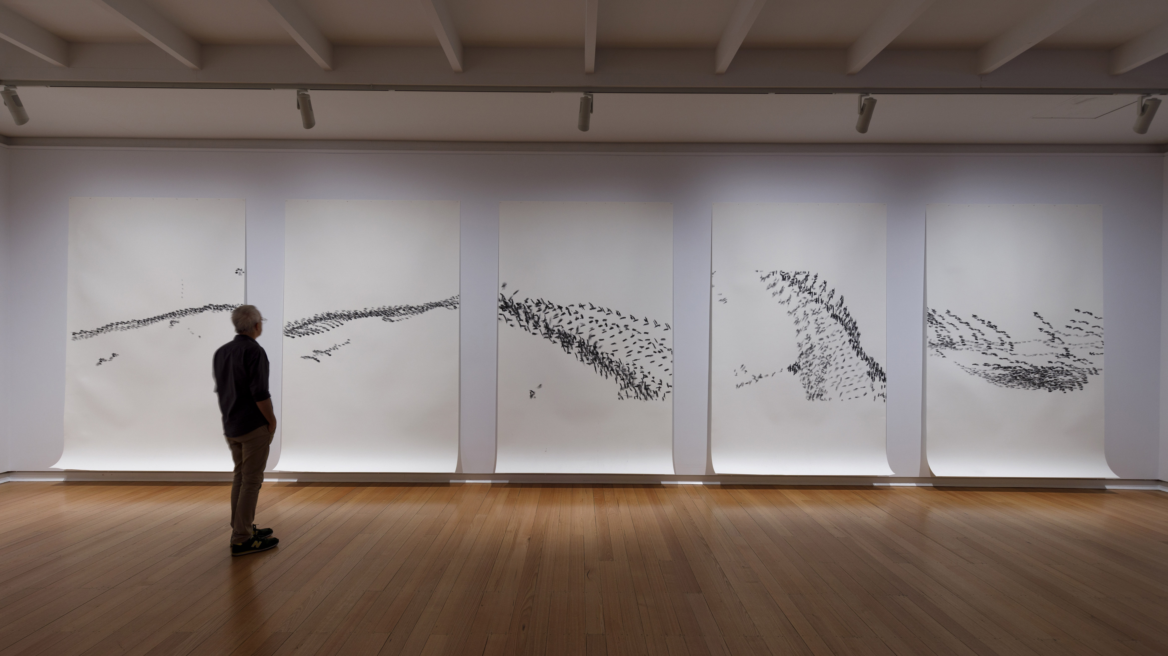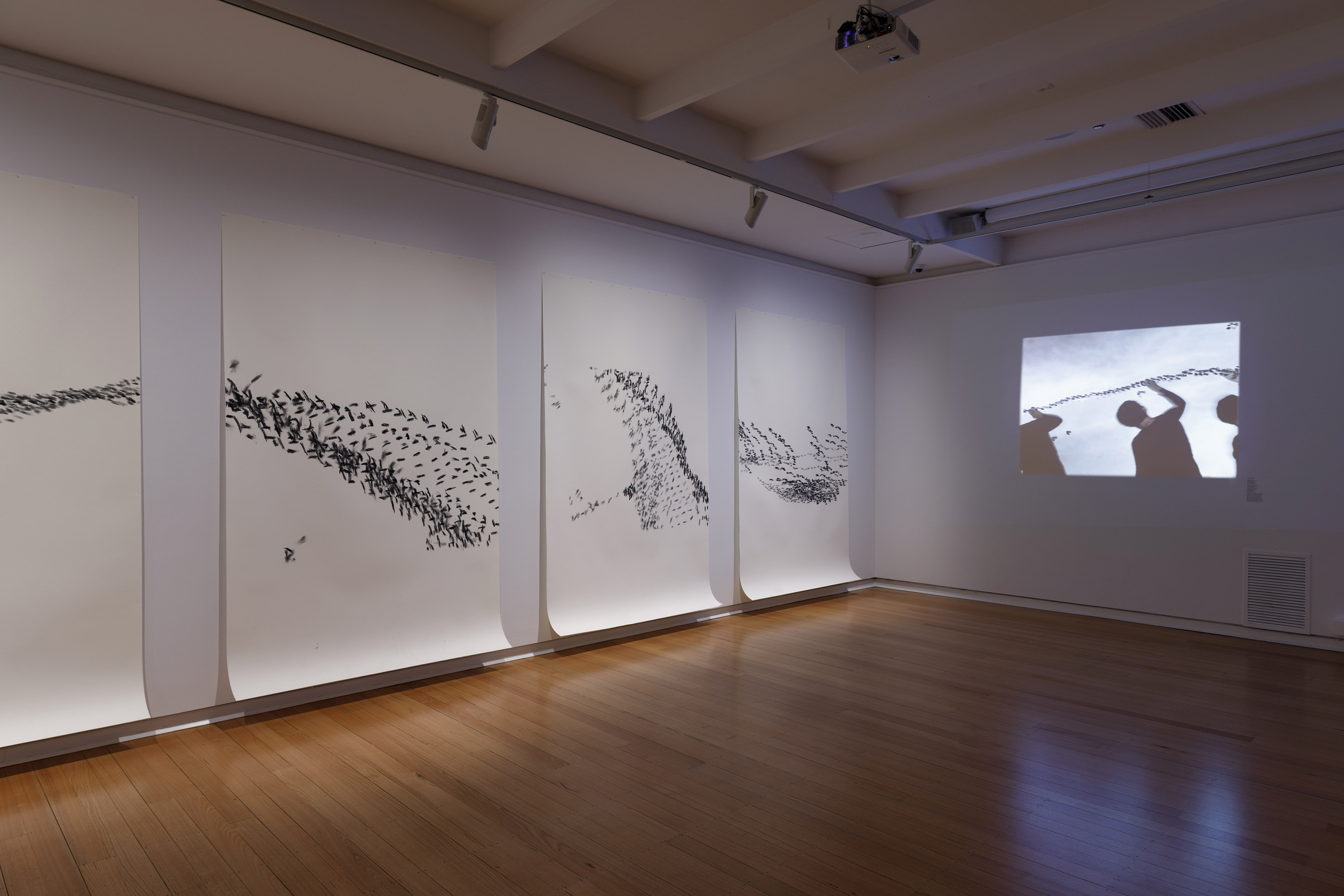 Multi-disciplinary artist Barbara Campbell takes inspiration from the journey of shorebirds that migrate every year from one end of the globe and back along ancient flyways in ex avibus. With a keen environmental focus, Campbell works in video, large-scale drawings, watercolours, and screen prints, to trace the journey from Arctic breeding grounds, to resting sites in South-East Asia, through to non-breeding grounds in Australia and New Zealand including Melbourne Water’s Western Treatment Farm at nearby Werribee.
