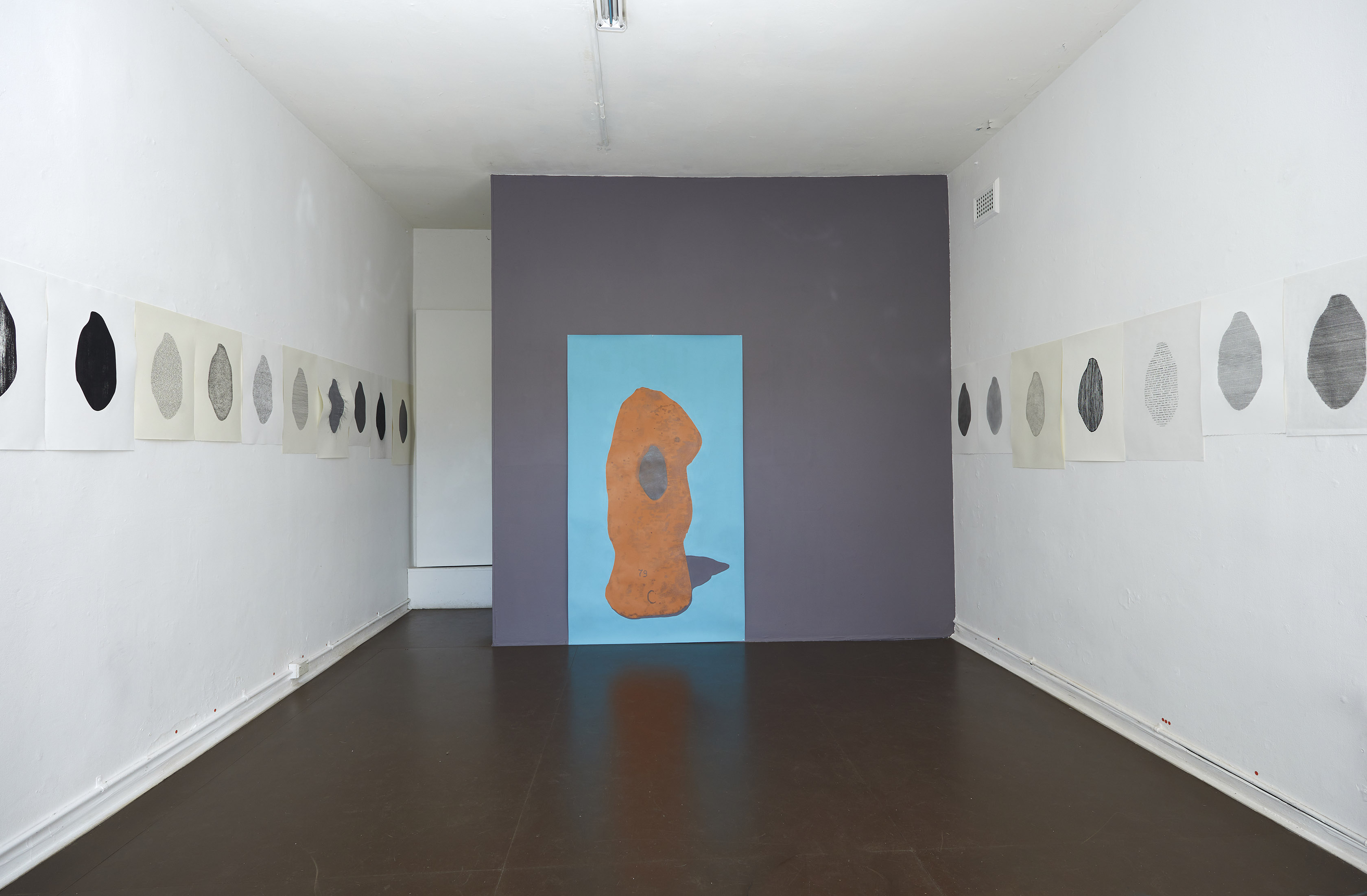The series of works on paper, To Fill the Hollow, was shown alongside its UR work, the large acrylic and graphite work AAR_079, itself derived from a terracotta votive figure in the collection of the American Academy in Rome.